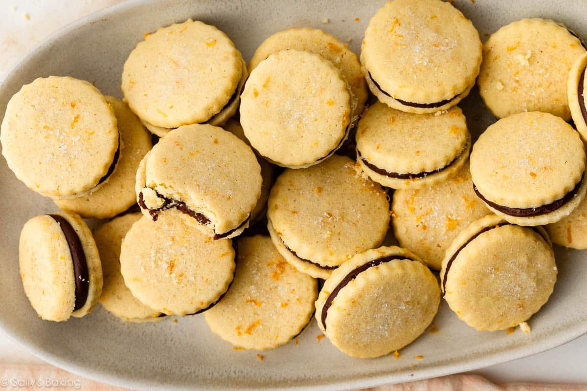 Buttery shortbread cookies flavored with fresh orange zest and sandwiched with rich chocolate ganache, these chocolate orange sandwich cookies are reminiscent of Milano cookies. They’re