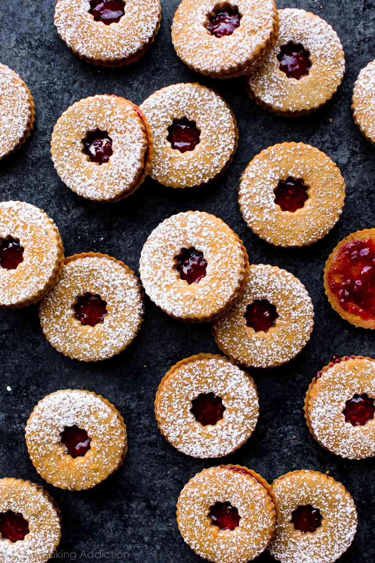 We have a classic beauty on today’s menu: linzer cookies. The dough can be made with either pistachios or almonds, and your favorite flavor of jam