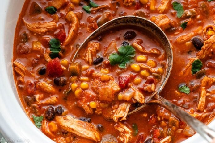 This flavorful, mildly spiced, creamy slow cooker chicken chili is a favorite dinner recipe. It’ freezes well, is super customizable, and leftovers keep for days. It’s a complete set-it-and-forget it meal.