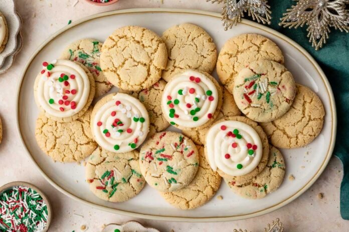 - If desired, decorate cooled cookies with buttercream frosting and top with sprinkles. For the pictured frosted cookies, I used the Wilton 12 piping tip to swirl buttercream on top of the cooled cookies.