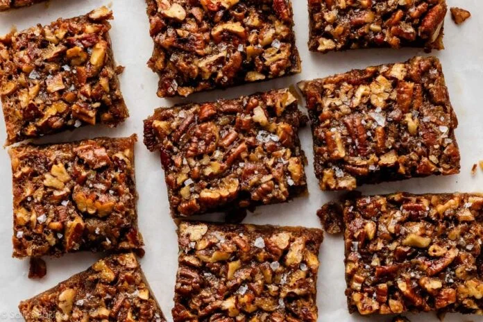 Made with brown butter, pure maple syrup, and plenty of toasty pecans, these salted brown butter pecan pie bars deliver that irresistible sweet-and-salty flavor in every bite without the fuss of baking a full pie.