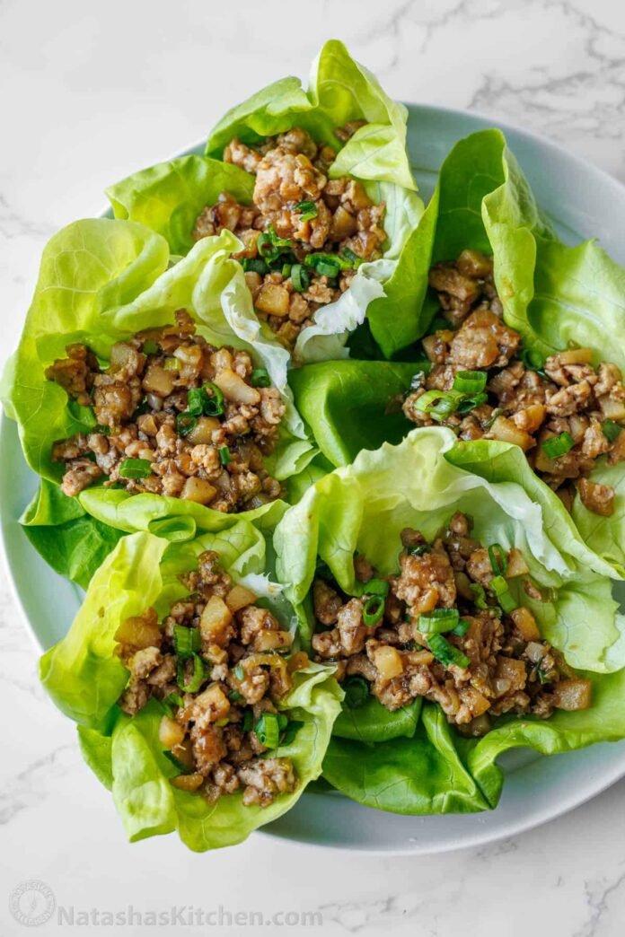 - Serve the filling scooped into the lettuce leaves, and then garnish with green onions, if desired.