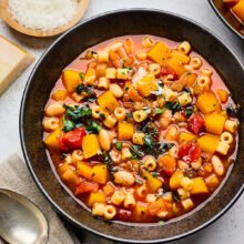 This cozy Fall Minestrone Soup is packed with seasonal vegetables like butternut squash, kale, and carrots, hearty beans, pasta, and a rich tomato broth infused with herbs and Parmesan. It’s the ultimate one-pot meal; comforting, nourishing, and perfect for the whole family.
