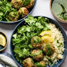 The meatballs are incredibly versatile too. I love serving them in a bowl with rice, peppery arugula, a drizzle of basil vinaigrette, and a sprinkle of Parmesan, but they’re just as tasty alongside roasted vegetables, tossed with pasta, or on top of a hearty salad for lunch or dinner.