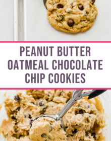 If you are a cookie fanatic, these peanut butter oatmeal chocolate chip cookies are guaranteed to become one of your all-time favorites. Chocolate chip, peanut butter, and oatmeal are all popular choices on their own, and these cookies combine the best of the best into one fantastic cookie!