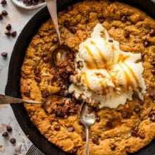 If you love skillet cookies, be sure to check out my Classic Chocolate Chip Skillet Cookie, S’mores Skillet Cookie, and Andes Mint Skillet Cookie.