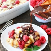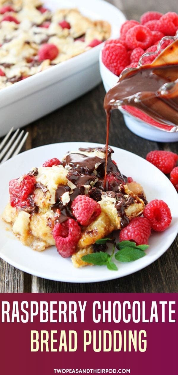 Drizzle the chocolate sauce over the warm bread pudding and you will be in dessert heaven! The raspberry and chocolate combo is to die for!
