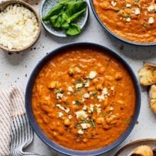 Ladle it into bowls, top with fresh basil and crumbled feta, and you’ve got a dish that looks beautiful and tastes incredible. Serve with crusty bread or a grilled cheese on the side for dunking!