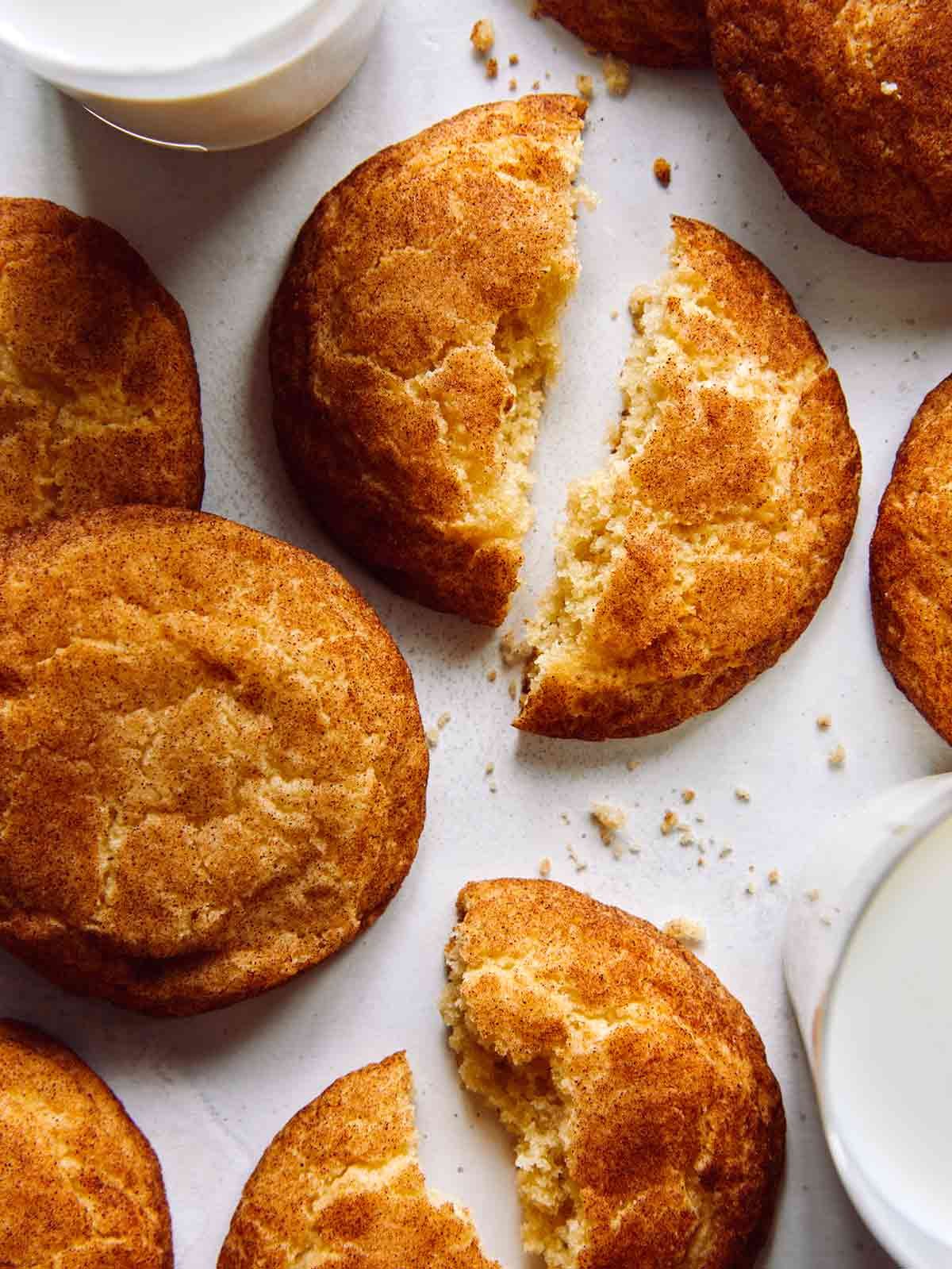 - Place cookies onto the prepared baking sheet about 1 1/2 inches apart. Bake the cookies for about 9 minutes or until cookies have puffed up, the cinnamon-sugar coating has darkened and the cookies have a slight crack on top. Remove cookies from the oven and cool for a few minutes before transferring to a cooling rack or serving.