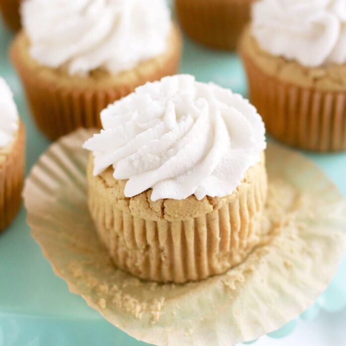 These Coconut Cupcakes are a fluffy, moist, sweet, guilt-free treat! Made with quinoa flour, sorghum flour, coconut yogurt, and coconut milk, so they’re gluten free, dairy free, vegan, and sugar free!